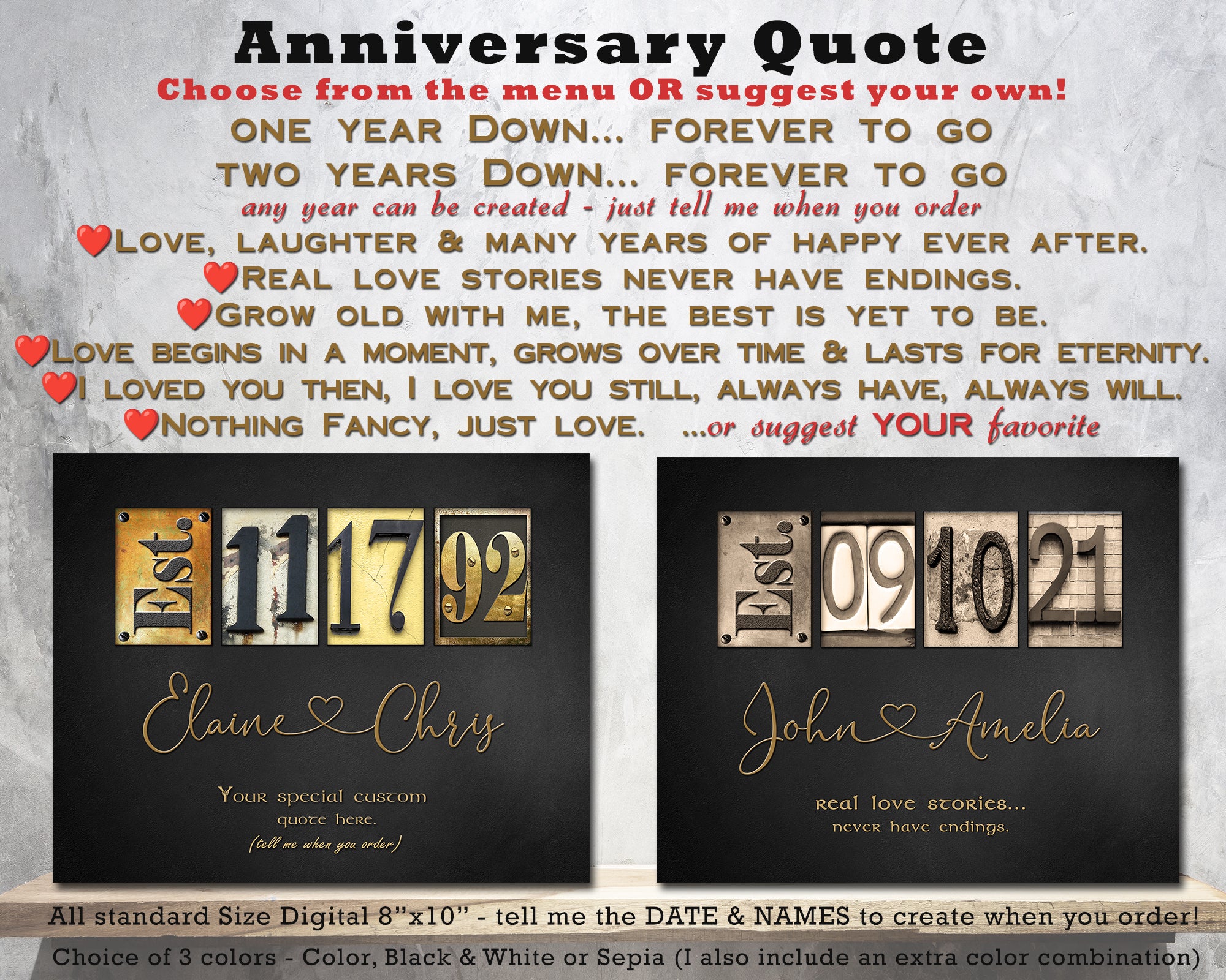 ♥ ANNIVERSARY DATE PRINT SIZE 8"x10"