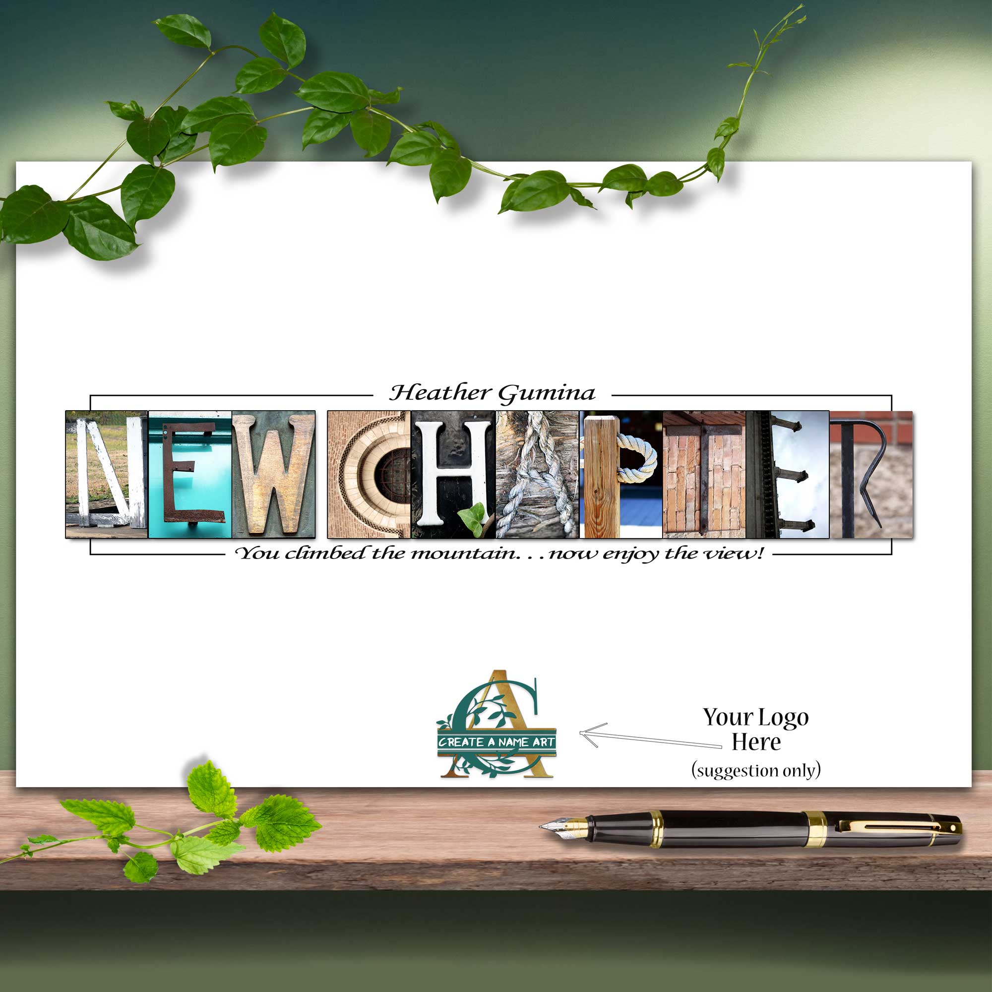 This listing is for my NEW CHAPTER letter art print. You will receive one high quality NEW CHAPTER letter art print with your choice of text such as Good Luck, You Will Be Missed and customization of the persons name, date and/or company name, above and below the letter art image.