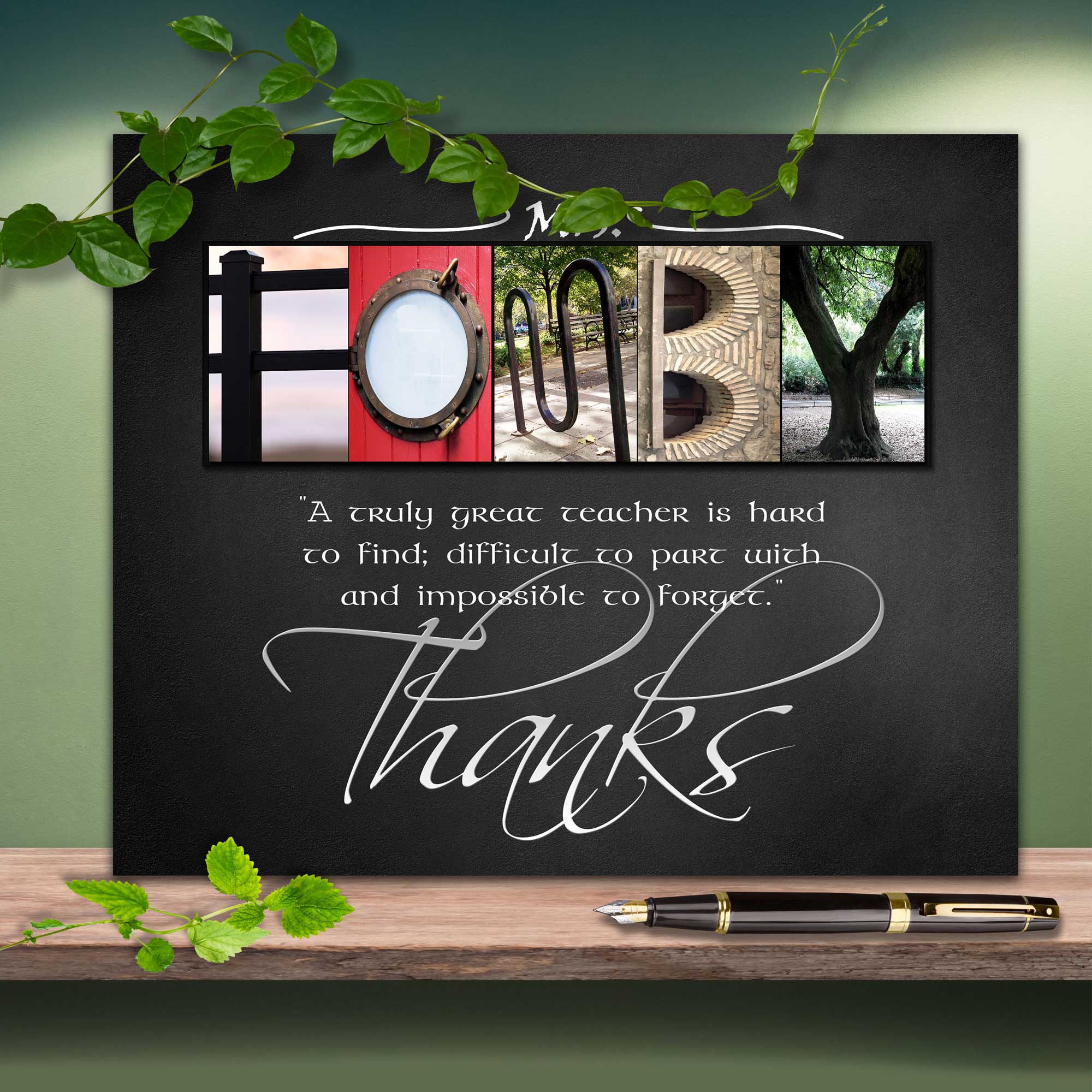 Using a unique blend of my alphabet art photos I have design the inspirational word THANKS. The five quotations I chose carefully to beautifully captures the sentiment. When printed and framed by you it makes a perfect gift for that special teacher to show your appreciation for the time, effort and dedication they have shown during the school year.
